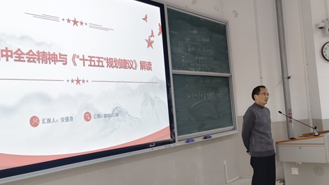 11月26日,济南大学商学院于D3J102教室开展专题党课,特邀金融系安强身教授对党的二十届四中全会精神与“十五五”规划建议进行解读,学院本学期新确定的入党积极分子和党员发展对象参加学习。