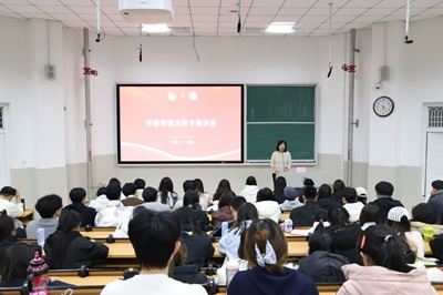 11月20日,学校党委统战部副部长、宗教事务办公室副主任刘鑫应邀为学员们开展宗教政策法规主题讲座,围绕习近平总书记关于宗教工作的重要论述,系统解读党的宗教工作基本方针的核心内涵,引导团员和青年牢固树立马克思主义宗教观,自觉遵守国家法律法规,提高法律意识和政治鉴别力,自觉筑牢思想防线。