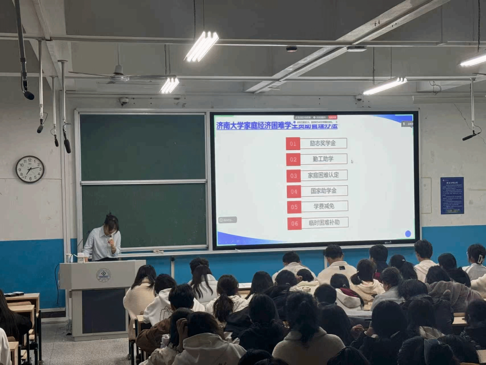 此次活动面向商学院2025级新生,围绕励志奖学金、勤工助学、家庭经济困难认定、国家助学金、学费减免、临时困难补助等多项资助政策展开宣讲。宣讲会上,学院自律会负责人通过政策解读、案例分析、互动答疑等形式,详细介绍了各类资助项目的申请条件、办理流程及注意事项,确保家庭经济困难学生能够及时获得精准帮扶,消除学业与生活上的后顾之忧。同时引导受资助学生树立“感恩于心、励志于行”的信念,鼓励他们将学校的关怀转化为奋进的动力,在学业上刻苦钻研、在实践中锤炼本领,以乐观向上的姿态面对成长中的挑战,努力成长为有理想、敢担当、能吃苦、肯奋斗的新时代青年。