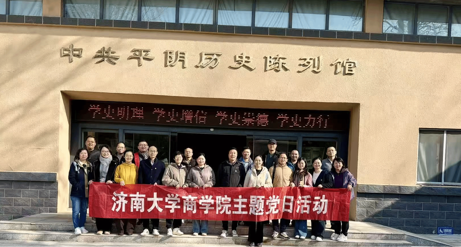 为深入贯彻落实习近平新时代中国特色社会主义思想,全面贯彻党的二十大精神,继承和弘扬革命先辈的光荣传统,增强全体党员的责任感和使命感,商学院金融系教工支部、经贸系教工支部和“促研助学”师生联合支部于11月29日赴济南平阴县委旧址开展“传承红色基因,坚定理想信念”主题党日活动。